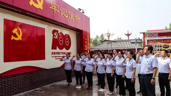 為紀念中國共產(chǎn)黨建黨100周年,繼承和發(fā)揚黨的光榮傳統(tǒng)和優(yōu)良作風,6月26日上午,三分公司機關(guān)第一、第二黨支部組織機關(guān)20余名黨員干部赴正定塔元莊,開展“發(fā)揮支部堡壘作用 永葆黨員先進本色”主題黨日活動。本次活動主要分重溫入黨誓詞、參觀塔元莊同福鄉(xiāng)村振興六位一體展廳兩個部分。