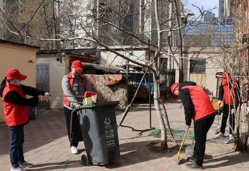 第一組也不示弱,大掃帚、小推車齊上陣,掃的掃、推的推,樓前樓后的垃圾和樹葉被清理得一干二凈。“你們來給打掃衛(wèi)生呢?是哪個單位?”“大媽,我們是河北四建的,今天是學雷鋒日,我們來幫小區(qū)搞衛(wèi)生。”他們正在5號樓前清理,一個頭發(fā)花白的老大媽上前詢問。