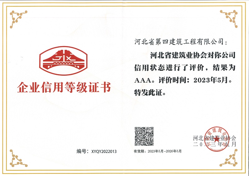 公司自成立以來(lái),始終注重誠(chéng)信機(jī)制建設(shè),堅(jiān)持貫徹誠(chéng)信經(jīng)營(yíng)理念,以誠(chéng)信彰顯國(guó)企擔(dān)當(dāng),在誠(chéng)信建設(shè)領(lǐng)域取得了明顯成效,連續(xù)多年榮獲河北省建筑業(yè)協(xié)會(huì)、中國(guó)建筑業(yè)協(xié)會(huì)、中國(guó)施工管理企業(yè)協(xié)會(huì)的“AAA級(jí)信用企業(yè)”,以及中國(guó)建設(shè)銀行“AAA信用等級(jí)”、國(guó)家稅務(wù)總局“納稅信用A級(jí)企業(yè)”、河北省建設(shè)工程招標(biāo)投標(biāo)協(xié)會(huì)“招標(biāo)投標(biāo)誠(chéng)實(shí)守信5A級(jí)施工企業(yè)”等榮譽(yù)稱號(hào),公司形象和社會(huì)美譽(yù)度不斷提升。(綜合辦公室)