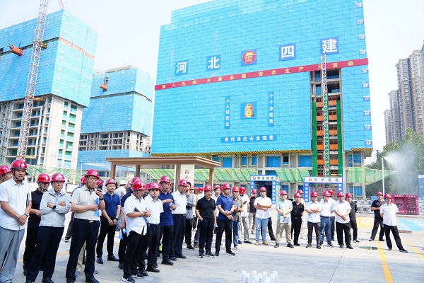 仲夏時節(jié),萬物并秀。6月12日上午,二分公司西三教城中村改造回遷項目部,迎來了由河北建工集團總工程師李占武帶隊,各分公司生產(chǎn)經(jīng)理、安全科長、項目經(jīng)理等組成的百人觀摩團。本次觀摩全面展現(xiàn)了項目部在智慧賦能安全生產(chǎn)領(lǐng)域的深耕成果,一系列安全文明施工標準化做法和智能化設(shè)備的實際應(yīng)用成效,贏得了觀摩人員一致好評。