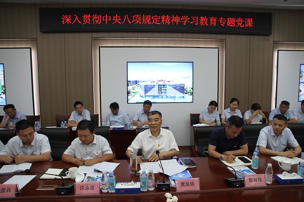 賈鳳鎖首先向大家傳達學習了6月27日省委書記倪岳峰就深入貫徹中央八項規(guī)定精神學習教育講授的專題黨課精神,隨后他緊密聯(lián)系自己的思想認識和工作實際,從五個維度切入,以詳實案例、深刻見解,結(jié)合集團實際發(fā)展需求,為與會人員帶來一場別開生面、干貨滿滿的黨課。一是深刻領會開展深入貫徹中央八項規(guī)定精神學習教育的重大意義。這是鞏固深化主題教育和黨紀學習教育成果、縱深推進全面從嚴治黨的重要舉措;是密切黨群干群關系、鞏固黨的執(zhí)政基礎的必然要求;是加強干部作風建設、實現(xiàn)企業(yè)高質(zhì)量發(fā)展的有力保障。開展深入貫徹中央八項規(guī)定精神學習教育,就是要促使集團黨員干部以更加優(yōu)良的作風,積極投身到集團確定的各項目標任務中,勇于擔當、積極作為,努力開創(chuàng)集團高質(zhì)量發(fā)展新局面。二是準確把握習近平總書記關于加強黨的作風建設重要論述的核心要義。本次學習教育,為全體黨員配備了《習近平關于加強黨的作風建設論述摘編》這本學習書籍,賈鳳鎖結(jié)合工作實際談了自己的學習體會。三是認真防范企業(yè)貫徹中央八項規(guī)定精神潛在的風險和問題。要防范形式主義損害企業(yè)發(fā)展質(zhì)量、官僚主義削弱企業(yè)凝聚力、享樂主義影響黨員干部形象、奢靡之風造成國有資產(chǎn)流失等四類風險。四是全面汲取深入學習貫徹中央八項規(guī)定精神的成效和經(jīng)驗。集團各單位聚焦重點任務,多元創(chuàng)新學思踐悟教育模式,扎實推進學習教育走深走實。特別是今天參會的單位學習教育成效有目共睹。比如:四建公司通過抓好領導班子學習示范,進一步引領廣大黨員干部深化對中央八項規(guī)定精神的領會,凝聚發(fā)展共識,上半年市場開發(fā)87.2億元,同比增長83%。五是切實把學習教育成果轉(zhuǎn)化為推進集團高質(zhì)量發(fā)展的強勁動力。突出整治整改工作重點,全力推動學習教育走深走實;聚焦領導班子作風建設,鍛造做強做優(yōu)做大企業(yè)“領航團隊”;圍繞生產(chǎn)經(jīng)營中心工作,激活促進高質(zhì)量發(fā)展“動力源泉”;直面“急難險重”攻堅任務,筑牢完成年度目標任務“攻堅堡壘”。課堂上,大家認真聽講、做好筆記,積極參與互動交流。賈鳳鎖希望以此次學習教育為契機,強化政治擔當,保持戰(zhàn)略定力,深刻把握中央八項規(guī)定精神的時代要求,堅決糾治“四風”頑疾,弘揚真抓實干作風,團結(jié)帶領全體干部職工以昂揚姿態(tài)、務實行動,共同書寫集團高質(zhì)量發(fā)展的嶄新篇章!