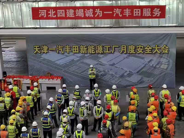 5月27日上午,由業(yè)主天津一汽豐田汽車項(xiàng)目部主辦的“新能源工廠建設(shè)項(xiàng)目月度安全大會(huì)”,在天津分公司施工的樹脂車間現(xiàn)場(chǎng)召開。中建、中冶、浙江寶業(yè)、江蘇江都等23家參建單位,1650人參加了大會(huì)。