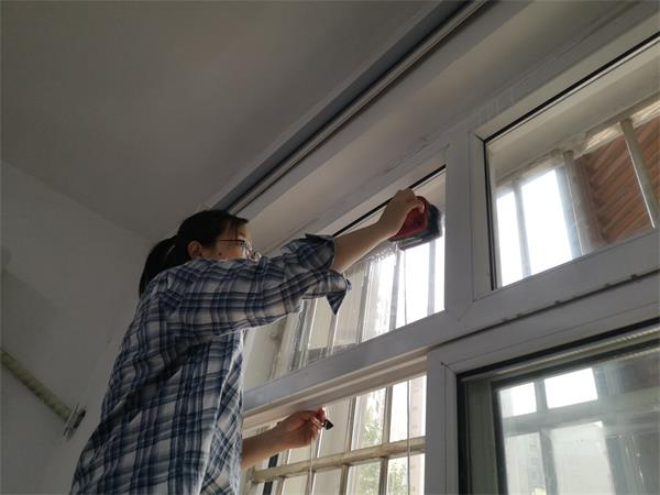 本次活動(dòng)主要針對(duì)設(shè)計(jì)院的公共衛(wèi)生區(qū)域。先是擦玻璃,職工孟榮榮說(shuō):“用報(bào)紙擦吧,以前都用報(bào)紙擦,擦得很干凈。”“那都是老黃歷了,現(xiàn)在都用擦玻璃神器啦,我早準(zhǔn)備好了?!壁w蓓說(shuō)。只見(jiàn)趙蓓拿出自帶了“刮水”功能的擦玻璃神器,沾上洗潔精水,吸附到玻璃窗上,不一會(huì)兒就把玻璃擦得干干凈凈。一樓設(shè)計(jì)室的外窗高,綜合辦準(zhǔn)備了加長(zhǎng)桿的玻璃刮子,司南帶領(lǐng)幾名青年職工認(rèn)真擦拭,使窗戶變得潔凈透亮。接下來(lái)打掃辦公區(qū)域,職工們不放過(guò)一個(gè)盲區(qū)、不落下一個(gè)角落。大家對(duì)辦公室、樓道、衛(wèi)生間的衛(wèi)生死角進(jìn)行清掃、噴灑消毒;對(duì)打印機(jī)、飲水機(jī)、儲(chǔ)物柜等公用設(shè)備進(jìn)行擦拭消毒;對(duì)門把手、沖水按鈕、水龍頭開(kāi)關(guān)等擦拭消毒。室內(nèi)清理完后清理小花園,大家拿著掃把、鏟子等工具,清掃拔除雜草,撿拾花池的雜物,清理衛(wèi)生死角,經(jīng)過(guò)兩個(gè)小時(shí)的勞動(dòng),辦公環(huán)境內(nèi)外煥然一新。