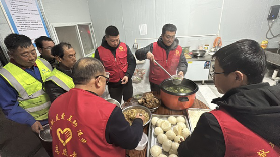 項(xiàng)目務(wù)工人員大多是當(dāng)?shù)卮迕?,離家較近的務(wù)工人員常自帶飯菜加熱食用。然而,天氣寒冷或加班時(shí),飯菜容易變涼??紤]到這一點(diǎn),項(xiàng)目部志愿者團(tuán)隊(duì)聯(lián)合食堂師傅,為工人們準(zhǔn)備了熱餐器具,并額外提供免費(fèi)雞蛋湯,讓大家在繁忙的施工之余,感受到家一般的溫暖。這一舉措不僅讓工友們吃得安心、干得舒心,更激發(fā)了大家的工作熱情,為施工生產(chǎn)注入了強(qiáng)勁動(dòng)力。